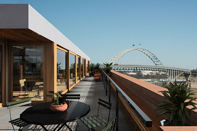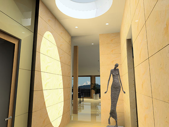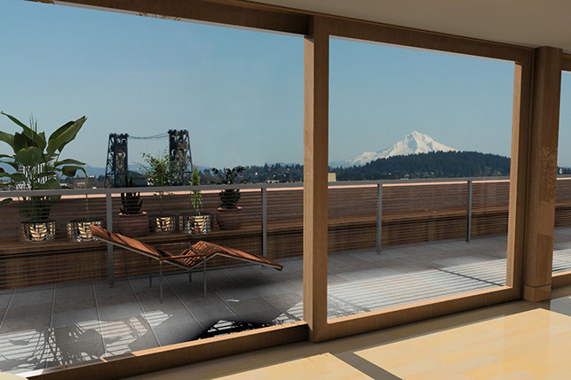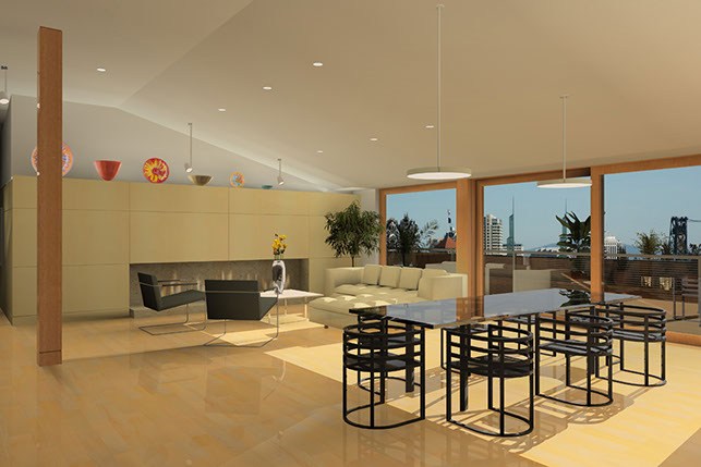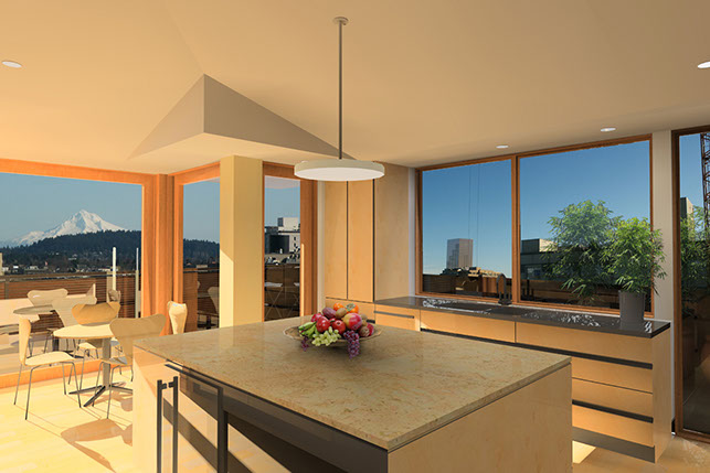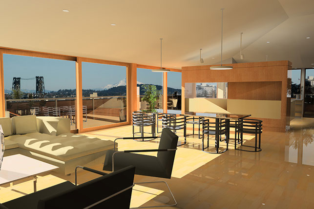 On the roof of the historic Crane building in the Pearl District, we designed 2 large penthouses that took advantage of their spectacular views of the city and mountains. The entry featured an oculus skylight lighting a sculpture, and all rooms opened out onto spacious decks.