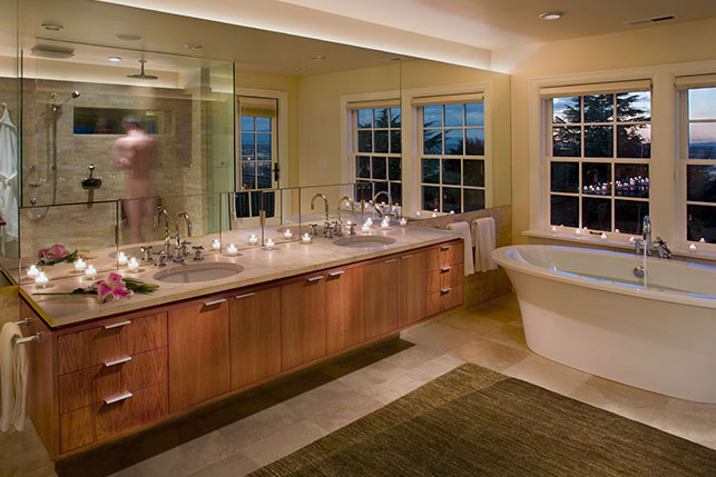 The first idea was to make the Master Bath a bit larger, maybe move the bathtub wall a foot. Their son had just graduated from college, and was moving to his new home out of town. The room had an extraordinary view north to Mt. St. Helens and Mt. Rainier.